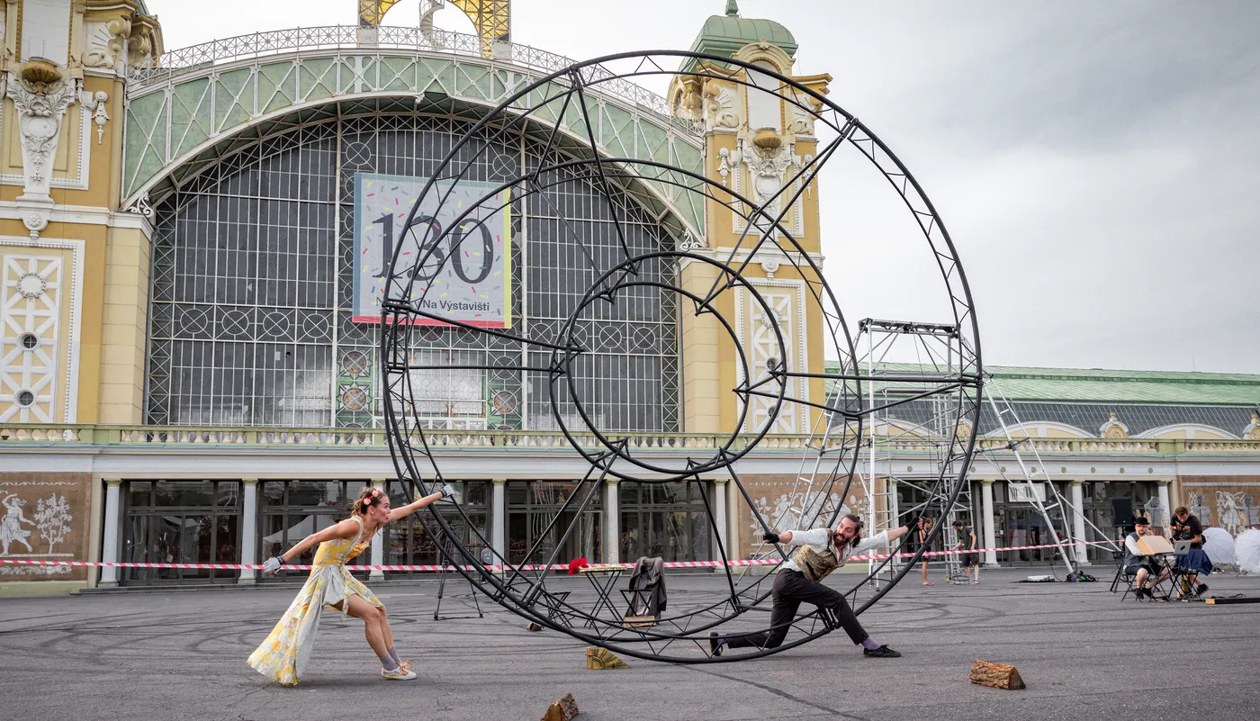 Pouliční vystoupení s akrobatickým kolem o dvou lidech a jedné lásce. S notnou dávkou lomozu i supění za vámi přijíždí zosobnění pradávného lidského vynálezu, pravé, nefalšované kolo.